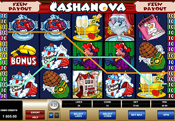 Герой игрового аппарата Cashanova не знает недостатка в женском внимании. Ему известны тайны покорения сердец представительниц прекрасного пола и он готов преподать несколько уроков по соблазнению. Наофициальном сайте клуба Вулканавтоматы запускаются онлайн. Забавный, оригинальный сюжет поднимет настроение, а ценные выплаты, если вы играете на деньги, увеличат баланс.