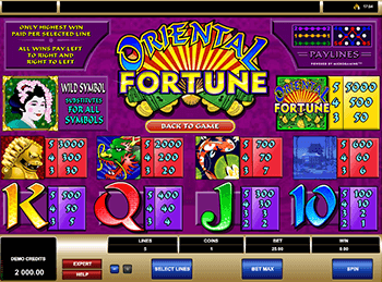 После регистрации сразу откроется режим на реальные деньги. После входа в основное меню игрового клуба можно будет шанс сделать первое пополнение счета. А дальше опишем основные характеристики игры Oriental Fortune. Выставляется от 1 до 5 линий. Вы сами выбираете задействованное число полос. Есть уникальная опция максимальной ставки. Если хотите узнать множители коэффициентов, то советуем ознакомиться с ними в разделе View Payout. Самый крупный джекпот – 250000 монет. Wild слота Восточная Удача выполнен в виде гейши, которая является заменой для остальных иконок. С помощью этого изображения вы получите шанс заработать джекпот. Удача обязательно улыбнется вам, если будете играть рискованно. Восточный дизайн восхищает невероятным оформлением.