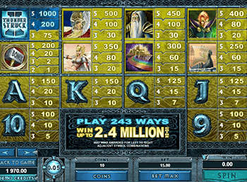 Играя на деньги, нужно найти верную стратегию. От ваших установок и действий будут зависеть суммы призовых. Вы сможете поставить сразу 243 линии, а значит, шансы на денежный успех в процессе каждого из вращений будут достаточно велики. Умножение ставки в 1000 раз ждет счастливых обладателей главного джекпота, который выпадет после повторения одинаковых иконок логотипа в активной линии. Этот джокер параллельно заменят остальные иконки. Специальный бонусный режим начнется после троекратного повторения на экране иконки с рисунком молота Тора. Это своего рода символ разброса, позволяющий увеличить баланс в разы. Можно использовать кнопку максимальной ставки в самый подходящий момент. Продолжение серии слота Thunderstruck подарит еще больше ощутимых выигрышей и принесет море эстетического удовольствия.